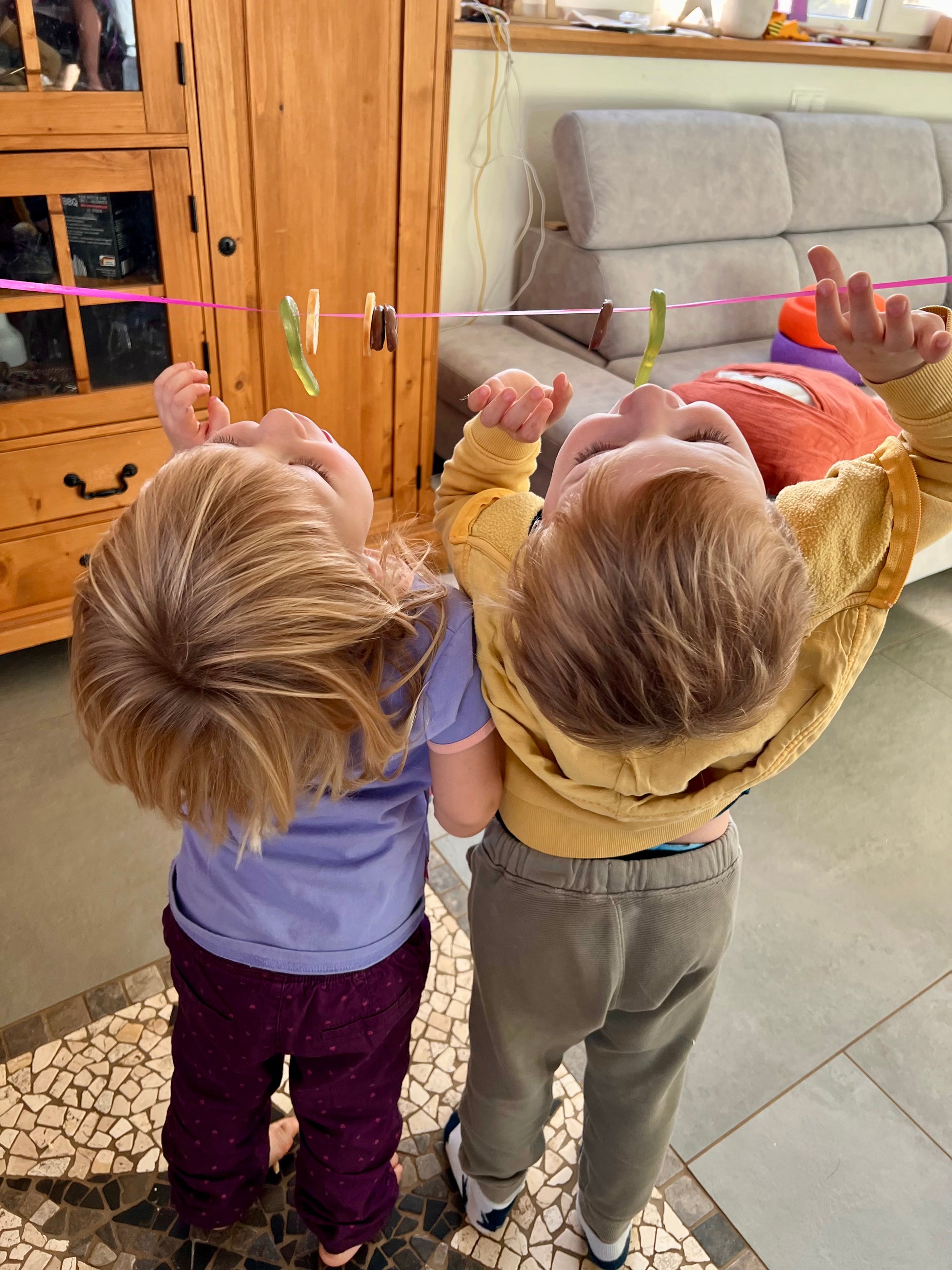 - Süßigkeiten zum Aufhängen an einer Schnur (z. B. Mäusespeck, Weingummi, Salzbrezeln)